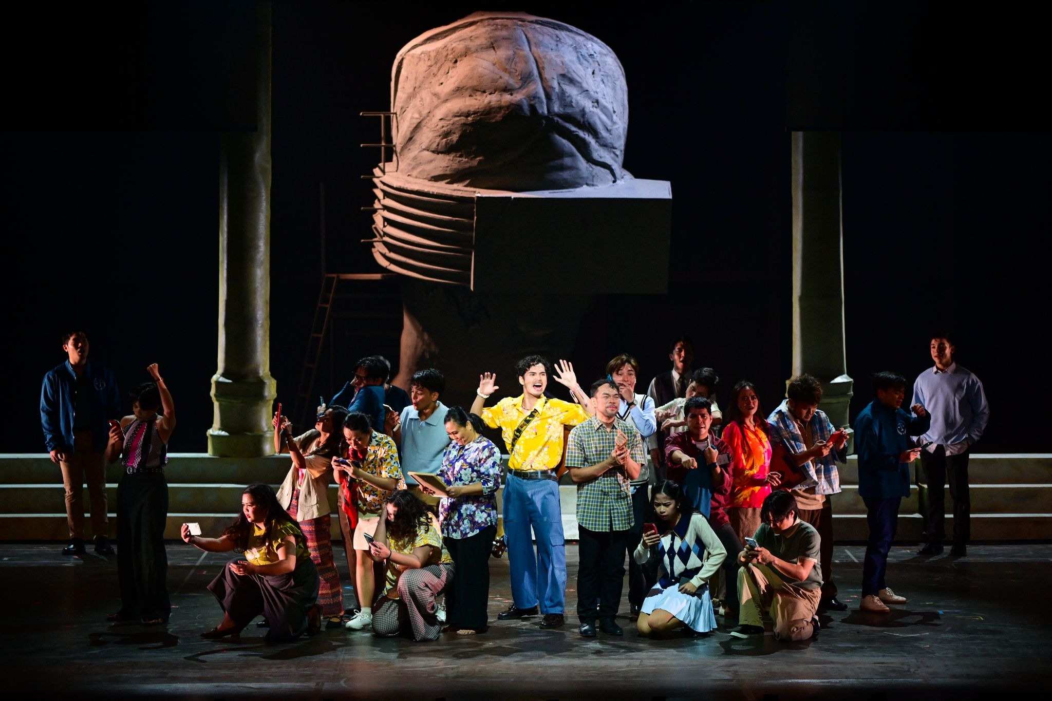 Compared to the film, the musical’s extended runtime allows its story and characters to breathe. Here, the four boys aren’t just future lawyers; they’re walking contradictions, each embodying a distinct facet of what it means to chase justice in an unjust system. The added depth in Erik and Paping’s storyline, particularly the buildup to the new case seeking justice for Paping and other victims of a workplace accident, sharpens their relationship, transforming what was once a simple underdog narrative into a more urgent commentary on how power bends the law, and on what must be lost, traded, or defended in the fight to make it right. Even so, flashes of humor, smart, timely, and unmistakably Filipino, cut through the cracks of the show’s heavier themes. From witty jabs about the system to cheeky one-liners that echo everyday banter online, Bar Boys proves that satire, when wielded with purpose, can hit just as hard as any gavel. Across its restagings, the production remains attuned to its moment—listening to the pulse of its audience, the shifting terrain of justice, and the persistent hope of the youth.